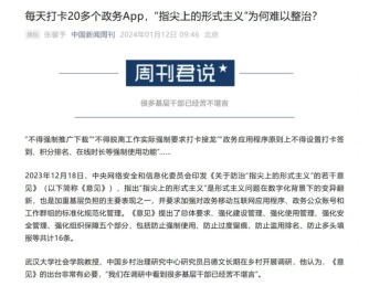 张馨予的获奖作品《整治“指尖上的形式主义”》刊发于2024年1月8日出版的《中国新闻周刊》第2期。作品敏锐捕捉到数字化时代形式主义的异化现象,通过横跨7省份的多维度基层调研,揭示了“强制使用APP和公众号”“工作群泛滥”“过度留痕”等指尖上的形式主义给基层治理带来的沉重负担,引发极大社会反响。