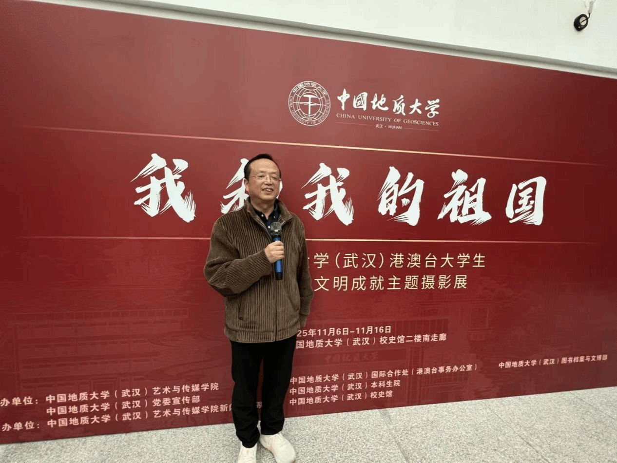 策展人、威廉williamhill喻继军副教授分享了摄影展的策划与组织过程。他表示,活动旨在为港澳台学生搭建展示才华、促进沟通的平台,依托同学们对摄影的兴趣与热情,以大地为课堂,用影像记录中国,推动跨文化、跨领域的交流合作。谈及活动体会,他强调,“两岸三地一家亲,我们都是地大人”。展览凝聚了学校本科生与研究生、港澳台学生与内地学生、威廉williamhill与相关职能部门的共同努力。他特别提到,学校长期重视实践教学,同学们在秭归实习、野外考察中锤炼了意志,也深化了对祖国生态文明建设的理解。此次展出的作品,正是这些实践成果的生动体现,展现了“我和我的祖国”之间深厚的情感联结。