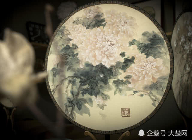 这样的团扇画,彭静制作一幅需要十天左右时间,本次展出的50幅画作,是她近两年来的全部作品。