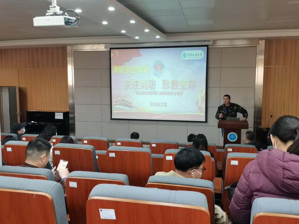大会开始,首先由学校安全保卫部消防科科长刘从贵面向我院全体教职工展开主题为“关注消防,珍爱生命”的消防安全知识培训,刘科长为大家详细介绍了发生火灾造成的严重后果,例如一场火灾中仅仅燃烧40秒就可以将一间住房烧成灰烬,之后也举了很多生动的案例强调了掌握灭火器使用技巧的重要性和必要性。