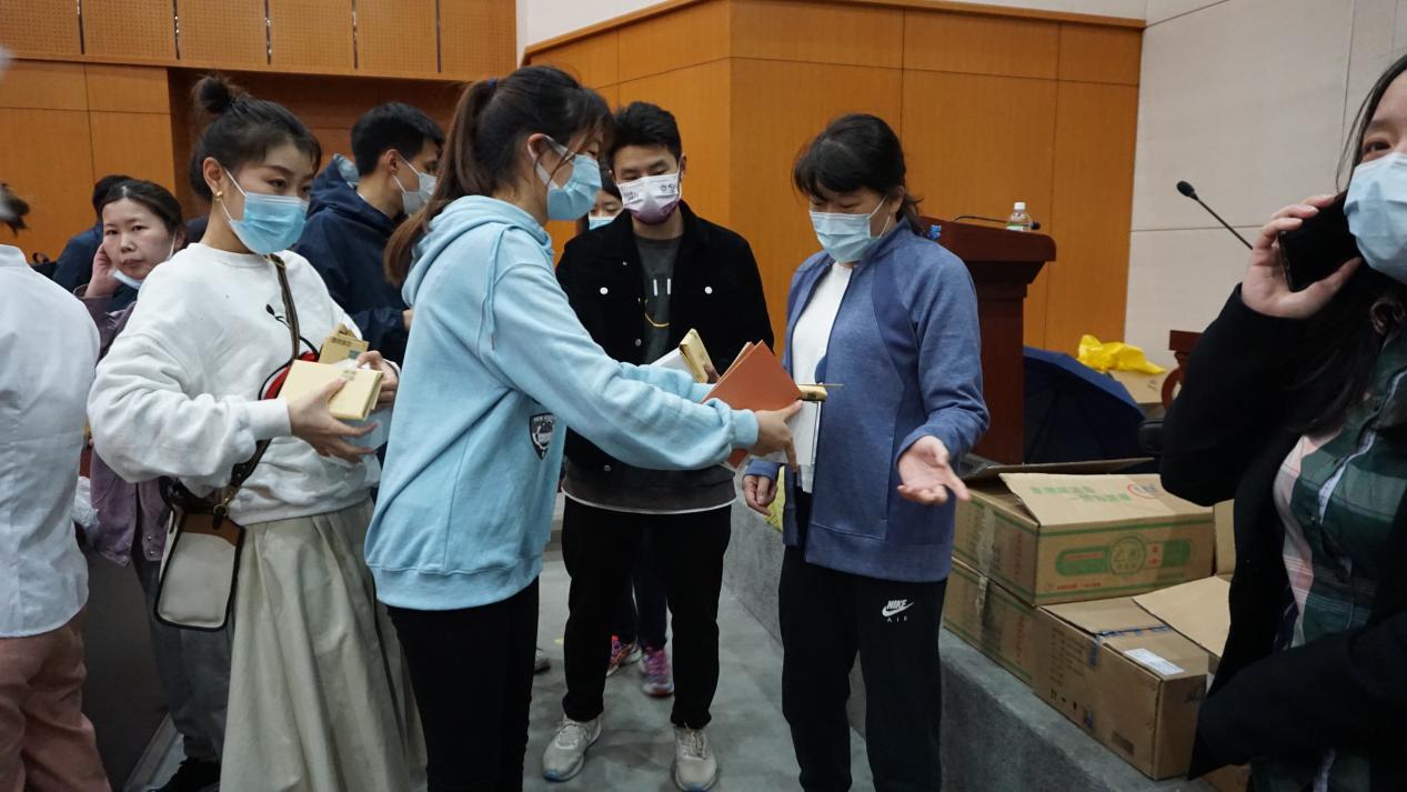 4月26日和28日下午,在艺媒学院党委副书记边建华老师和外国语学院党委副书记胡文勤老师的带领下,我校大学生创新创业团队“地心引力”的十几名成员在核酸检测即将结束之际,给北区及东区的医护人员和志愿者、保安师傅们送上地大同学们手写的感恩贺卡、100余套的地大特色文创产品以及奶茶饮品,向他们表达了一份敬意和感激。在天气湿热和风雨交加的天气环境下,地心引力团队希望这个小举动能让他们感受到地大学子的温暖和情怀。
