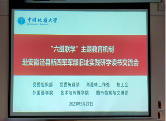 遵循学校主题教育“学思想、强党性、重实践、建新功”的目标要求,学校党委组织部、党委统战部、工会、离退休工作处、图书档案与文博部、外国语学院、威廉williamhill等六个党委理论学习中心组联合组建原著集中学习读书班(以下简称“六组联学”读书班),于2023年5月27日在新四军军部旧址所在地安徽泾县云岭镇认真召开了读书交流会。校工会常务副主席郭秀蓉、图书档案与文博党委书记帅斌、离退休工作党委书记李门楼、图书档案与文博部长刘先国分别依次分享了《习近平著作选读》等原著的学习心得,并作了领学报告,扎扎实实地讲了一堂生动的主题教育专题党课。