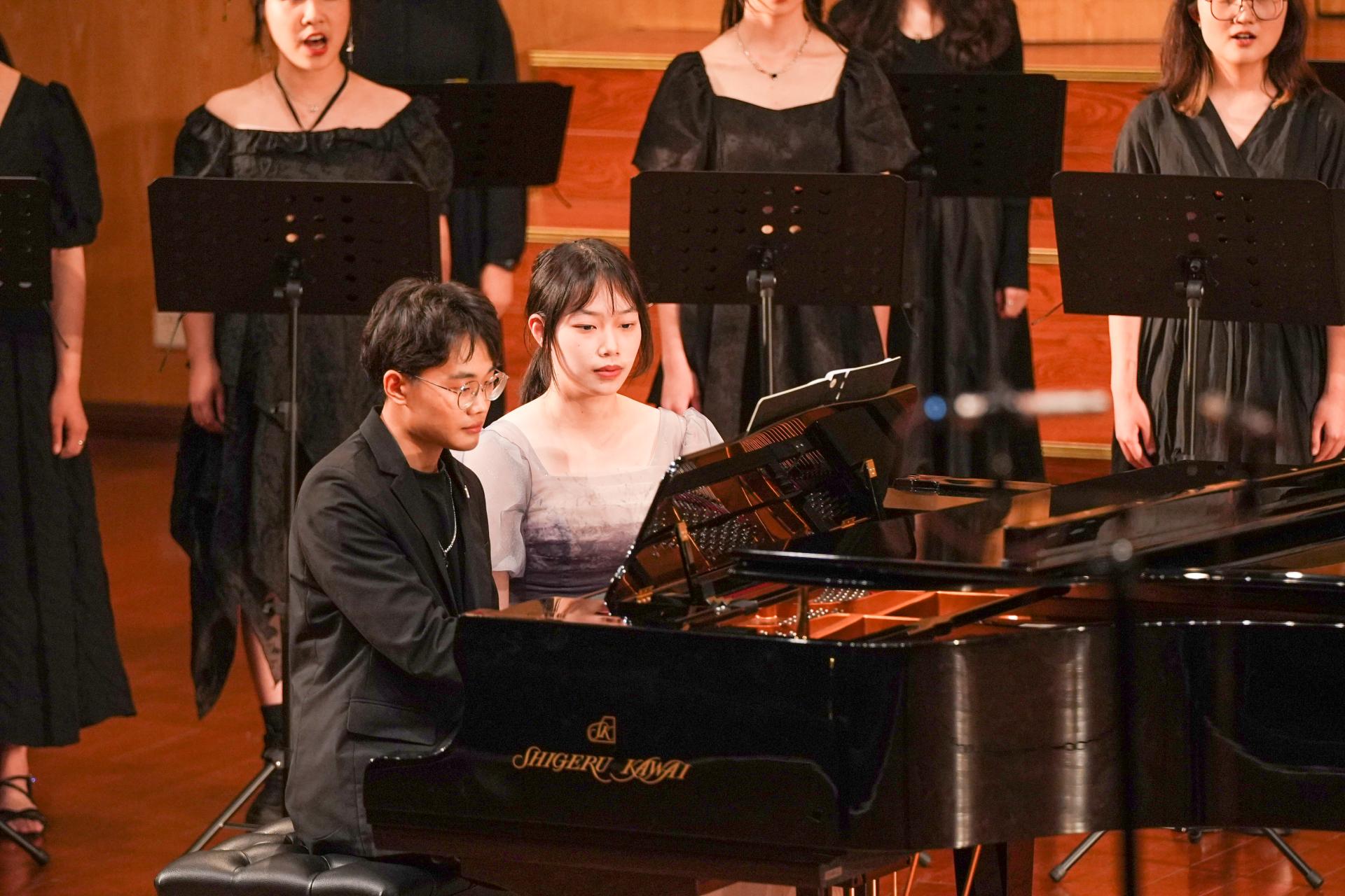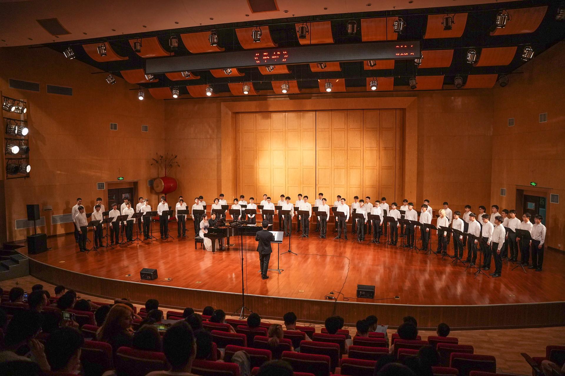 同学们饱含激情地演唱了12首风格各异的歌曲,表达对艺术的热爱与追求,展现出我校学子的青春风采。一首旋律灵动,活泼可爱的女声合唱《听音乐会不要讲话》拉开了“时光”的序幕。这场“时光”经历了初春的《蒲公英》、金秋的《城南送别》、深冬里《雪花的快乐》,最后将在盛夏道别。