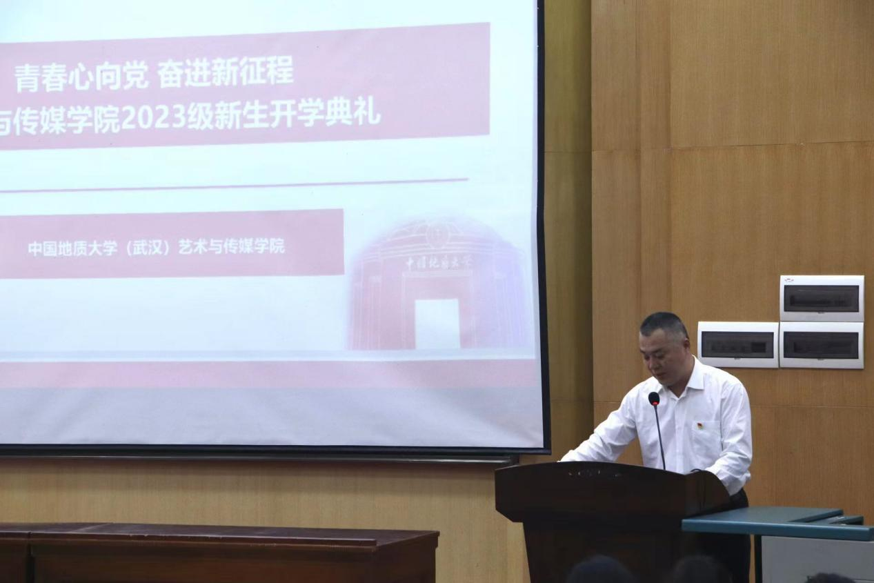 2023年10月8日下午14:30,威廉williamhill2023级新生开学典礼于西区教三楼109教室正式开始。学院党委书记晋曦,院长何清俊,副院长张梅珍、杨喆、袁玥、彭静,音乐系系主任周莉、党支部书记周黎,新闻传播系系主任宁薇、党支部书记尚媛媛,视觉与媒体设计系副主任徐莉,景观学系党支部书记程璜鑫、景观学系副主任程驰,学院办公室主任李伟娜,新生班主任王琦、曾珍、蔡爱新、郑丹丹,院直全体老师,以及全体2023级本研新生参加了此次开学典礼,活动由学院党委副书记边建华主持。