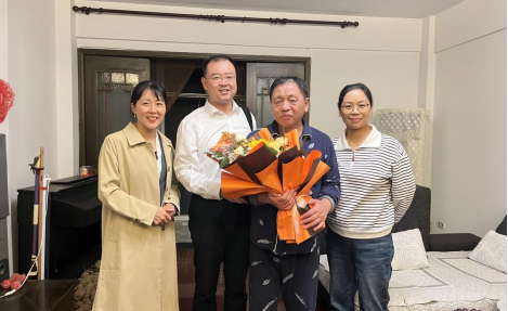 10月25日,学院党委书记晋曦、分工会主席周黎、办公室主任李伟娜、新闻传播系主任宁薇,到新闻传播系退休教师袁朝家中看望慰问。同志们关切地询问了袁老师的身体情况,介绍了学院的发展情况,听取了袁老师对学院工作的意见和建议。晋曦表示,学院事业发展离不开老一代艺媒人的拼搏与奋斗,感谢老同志们为学院高质量发展奠定的坚实基础,希望老教师发挥余热,一如既往地关心、支持学院发展。