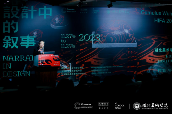 2023年11月27日上午09:30,2023 国际艺术与设计院校联盟Cumulus武汉(湖北美术学院“设计中的叙事”平行会议)开幕式在武汉市武昌区中山路293号桃花岭大酒店四楼桃花源一厅举行,我院院长何清俊教授受邀参加开幕式。出席开幕式的领导有湖北省人民代表大会常务委员会副主任杨云彦,湖北省教育厅体育卫生与艺术教育处二级调研员姜贵君。出席开幕式的专家有:全国设计专业学位研究生教育指导委员会副主任委员、清华大学美术学院杨东江教授,全国艺术专业学位研究生教育指导委员会秘书长、同济大学范圣玺教授,全国艺术专业学位研究生教育指导委员、苏州大学李海明教授,全国艺术专业学位研究生教育指导委员会委员、鲁迅美术学院副院长赵璐教授,全国设计专业学位研究生教育指导委员会委员、华中师范大学辛艺华教授,中国艺术人类学学会会长、中国艺术研究院方李莉教授,华中科技大学李保峰教授等,还有来自英国、奥地利、马来西亚、日本等国家的学者。湖北美术学院全体校领导,湖北美术学院各教学单位师生代表以及学术研究者百余人出席开幕式。开幕式由湖北美术学院党委副书记、院长周峰主持。