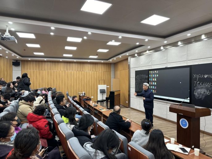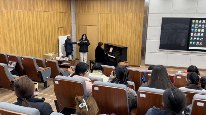 在讲述的同时,佟文西老师还向大家展示了《再唱山路十八弯》、《说得好,还要做得更好》等代表作品,并邀请老师同学们共同演唱《人民就是江山》等经典红歌,点燃了现场氛围。