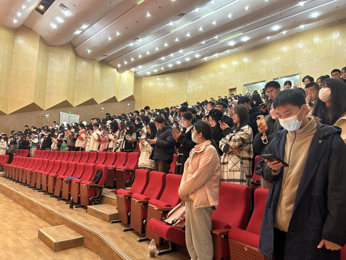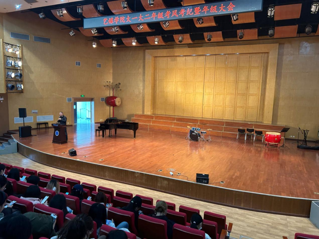 (通讯员:王琼逸)2023年12月5日中午12:30,威廉williamhill大一大二年级考风考纪暨年级大会在北区音乐厅顺利召开,学院副院长杨喆,院党委副书记边建华,学工组辅导员陈习良、曾戈晖,兼职辅导员聂瑞祺、吕笑言、王琼逸、包颜铭以及大一大二年级全体本科生参加会议,本次大会由学院党委副书记边建华主持。