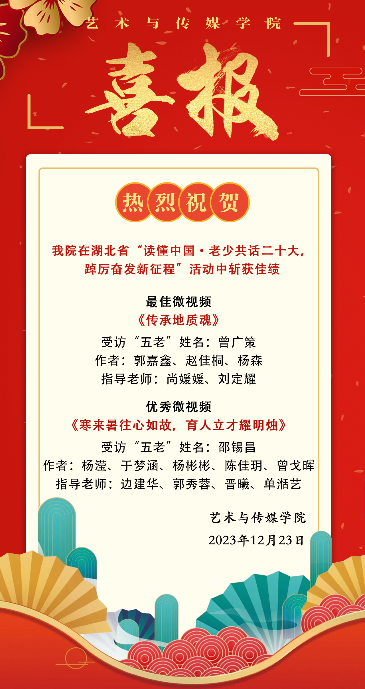 喜报 | 热烈祝贺我院在湖北省“读懂中国•老少共话二十大,踔厉奋发新征程”活动中斩获佳绩