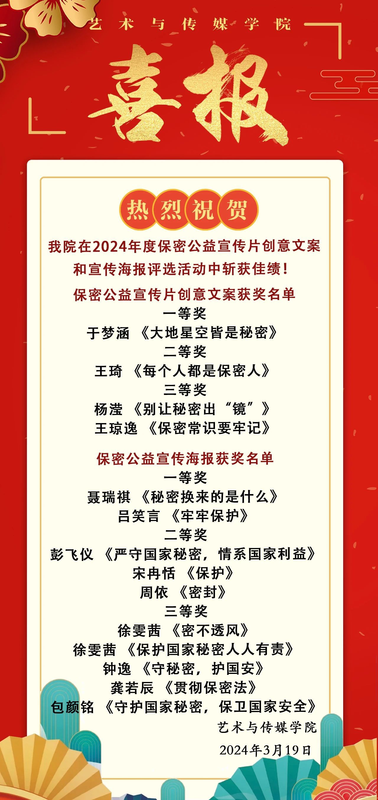 喜报 | 热烈祝贺我院在2024年度保密公益宣传片创意文案和宣传海报评选活动中斩获佳绩!