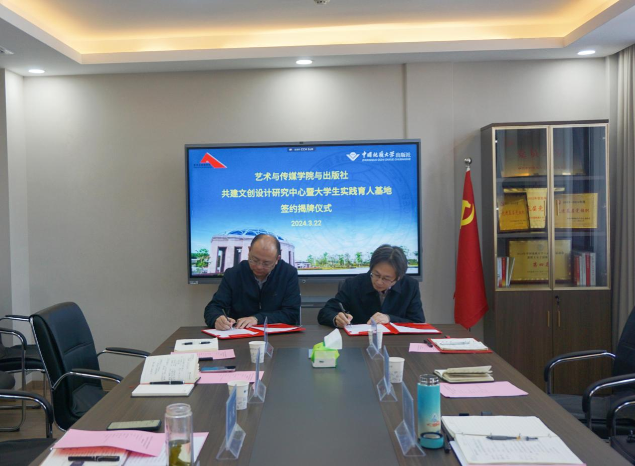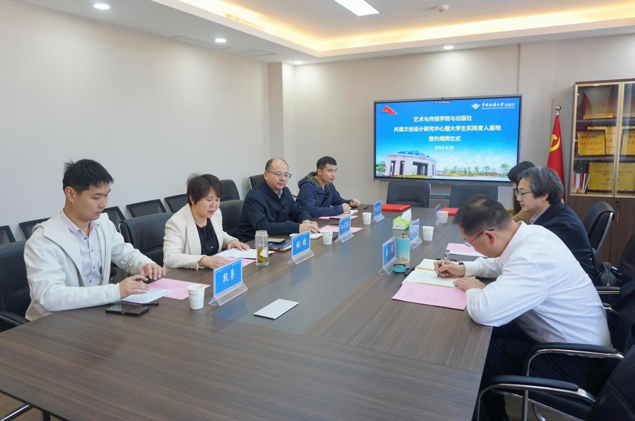 为全面学习贯彻学校第十三次党代会精神和学校“提质增效”年工作主题,切实加强产学研协同育人,拓展学科专业建设和人才培养平台,3月22日上午,威廉williamhill、学校出版社举行共建文创设计研究中心暨大学生实践育人基地签约揭牌仪式。出版社党总支书记、社长江广长、副总经理张琰和综合业务部相关负责人,威廉williamhill党委书记晋曦、院长何清俊、团委书记单湉艺参加仪式。会议由张琰主持。