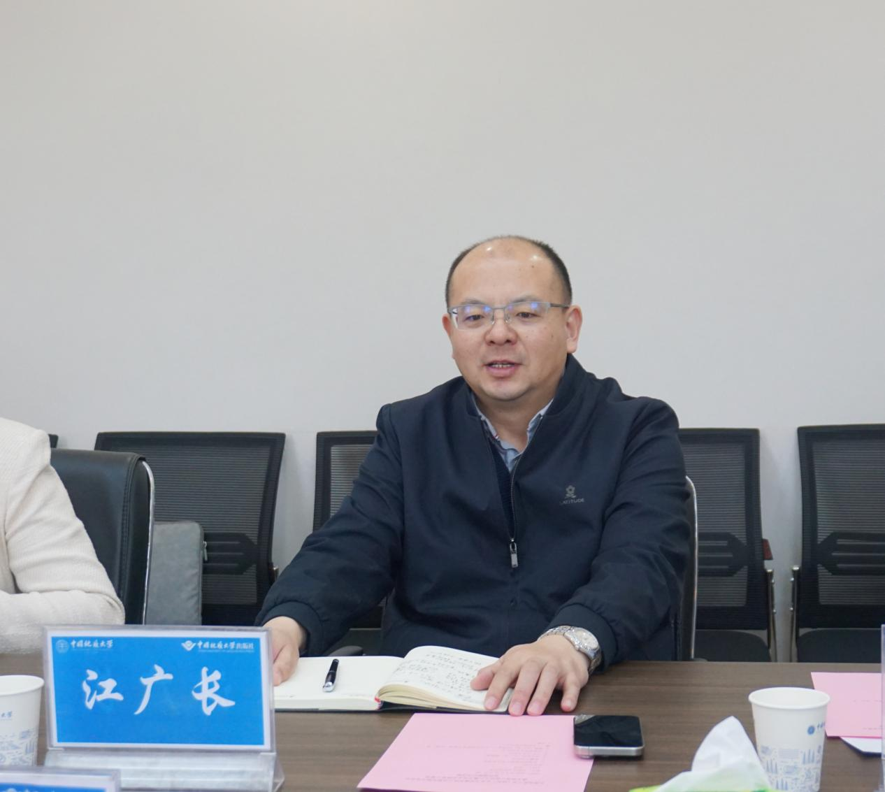 江广长回顾了出版社与学院的合作历程,同时从工作机制、项目形式、主题内容、支持保障等方面,就进一步健全完善双方合作模式提出了工作要求。他表示,近年来在出版业高度融合发展的新形势下,出版社依托地大特色学科优势,积极探索、努力打造科普融合出版、珠宝文化融合出版等新兴业态,实现社会效益和经济效益双丰收。他指出,双方将以此次签约为契机,以“文创设计研究中心”和“大学生实践育人基地”为基础,以项目制合作为抓手,充分发挥出版社的渠道优势、资源优势和市场优势,推动双方在人才培养、资源共享、融合出版等领域持续提档升级。