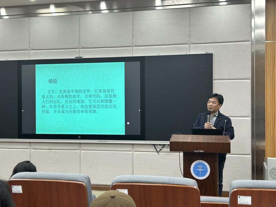 讲座结束后进行问答互动环节,练教授对于同学们的提问进行了耐心的解答。练春海教授在讲座中从多维角度讲解了图案与文字的关系,以及不同时代文化背景下的演变,讲座案例丰富、内容详实,帮助同学们对文字图像符号的有了更加深刻的理解。