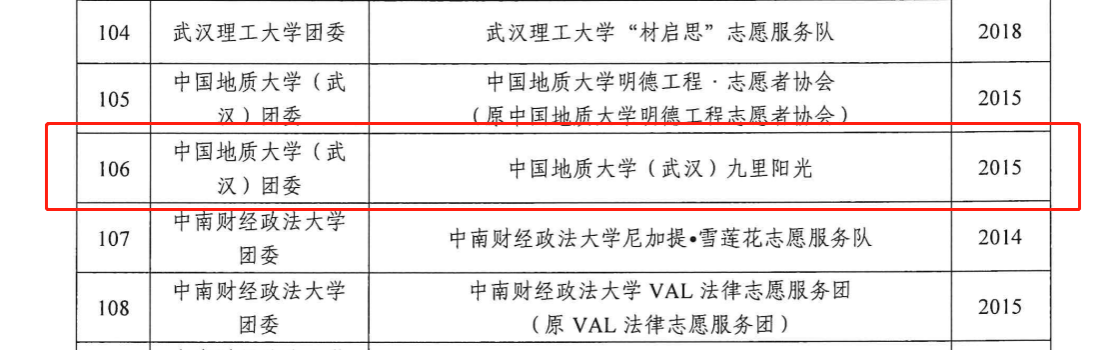 近日,湖北省志愿者协会下发《湖北省“本禹志愿服务队”2023年度拟命名和2014—2022年度复核拟保留命名名单公示》。根据评审结果,拟命名2023年度湖北省“本禹志愿服务队”50支,2014—2022年度复核拟保留命名湖北省“本禹志愿服务队”150支。我院九里阳光艺术支教团队经复核保留湖北省“本禹志愿服务队”称号。