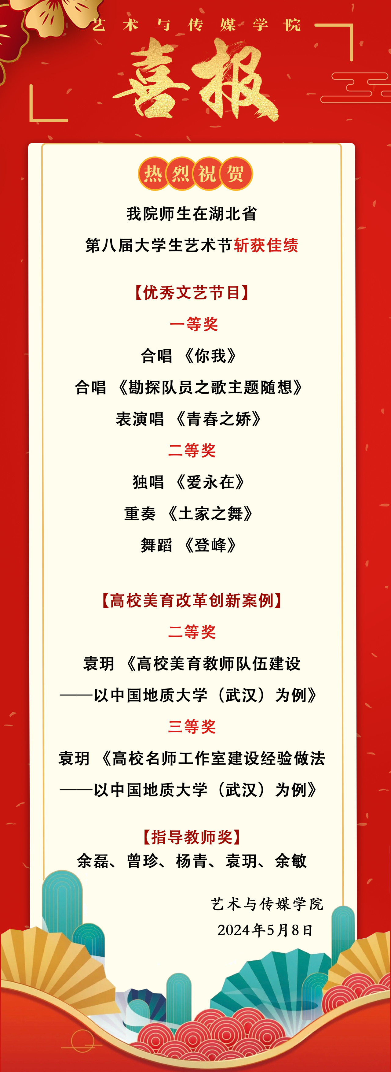 我院多部作品斩获湖北省第八届大学生艺术节多个奖项,不仅是对专业教学成果的肯定,更是学校美育工作在省内的一次成功展示。未来,威廉williamhill将继续坚持“以美育人、以文化人”,围绕党和国家发展的时代主题,在习近平文化思想的指引下,将美育实践与学科建设相结合,让音乐之美浸润校园!
