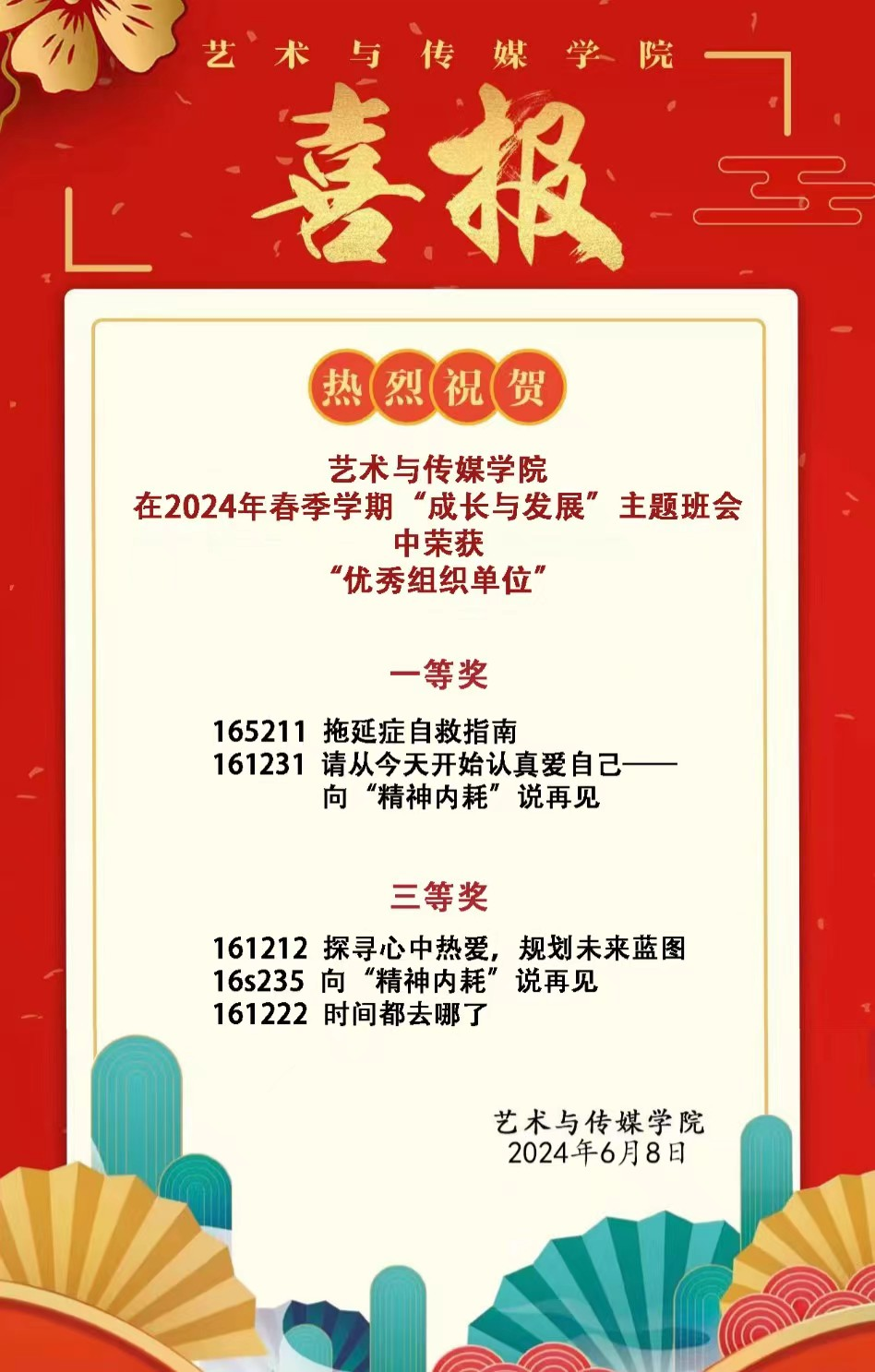 喜报 | 热烈祝贺我院在2024年春季学期“成长与发展”主题班会中斩获佳绩!