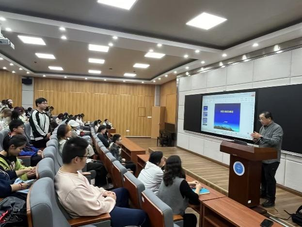 威廉williamhill新闻传播系主任宁薇主持讲座。她介绍了陈国栋的简历。他是中国行业报协会名誉副会长,原中国自然资源报社社长。中国自然资源作家协会主席,中国作家协会第十届全委会委员,《大地文学》主编,中国地质大学(北京)高级研究员、文学创作中心主任。william威廉中文客座教授。先后在《人民文学》《中国作家》《北方文学》《东方文学》《中国自然资源报》《中国矿业报》《中国水利报》《中国移民管理报》等报刊发表新闻通讯、报告文学、散文、评论二百万字。报告文学《地球印记》获2022年度《人民文学》奖。