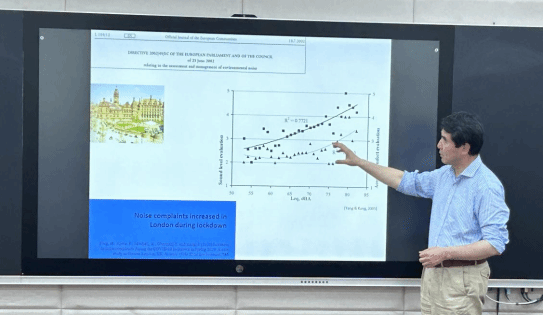 讲座伊始,康健院士以国际标准化组织(ISO)标准为出发点,阐释了“声景”这一概念,即“个体或群体在特定语境下感知、体验或理解的声环境”,强调了声景设计应以人的主观感知为核心,这与传统的噪声控制理念存在显著差异。康院士援引相关数据指出,我国噪声投诉在环境投诉中位居首位,而在欧洲,噪声所导致的经济损失占其国内生产总值(GDP)的0.2%-2%,且每增加1分贝噪声,房价便会下降0.6%。基于此,康院士指出,声景设计是将声音转化为提升健康、文化与经济价值的重要资源,具有重要的现实意义。