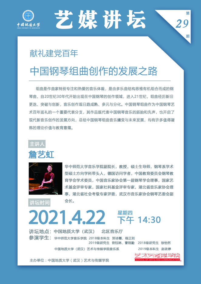 [2021年4月22日]艺媒讲坛(29期):华中师范大学詹艺虹教授讲座