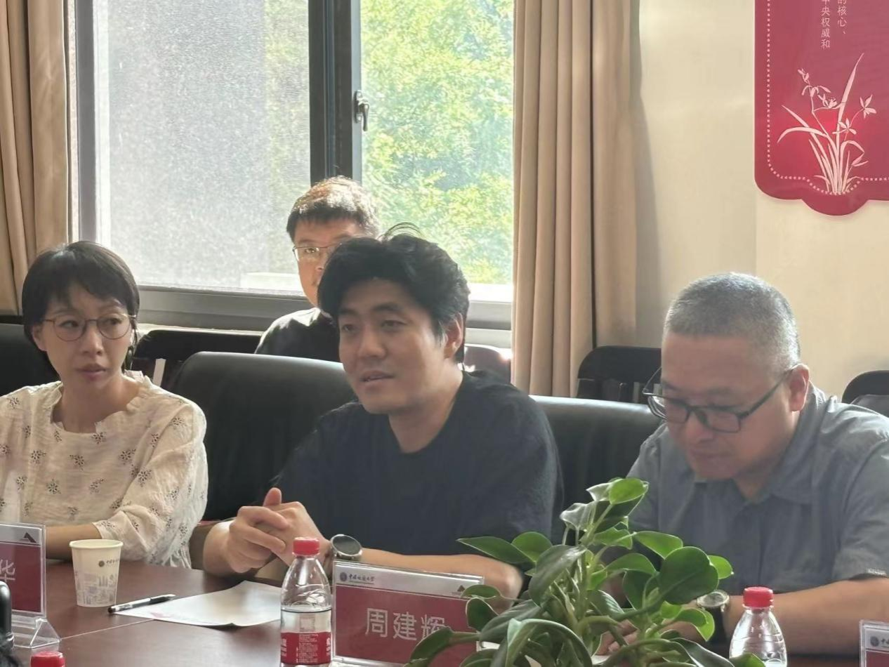 张晓华对艺科所的主要业务以及下设部门的职能进行了介绍,并表示艺科所始终致力于开展现代科学技术与文化艺术领域相融合的应用研究工作,并对我院课题申报及学科建设取得的成绩给予了认可。