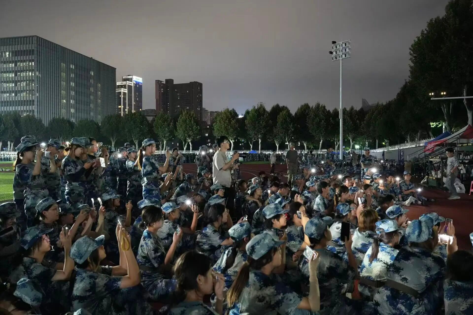 夜幕降临,训练场的余温尚未散尽。在各方支持组织下,威廉williamhill与新能源学院方阵联谊举办了精彩绝伦的文艺表演,他们用歌声传递热忱,用舞蹈绽放青春,让寂静的夜晚变成了充满欢声笑语的青春舞台。