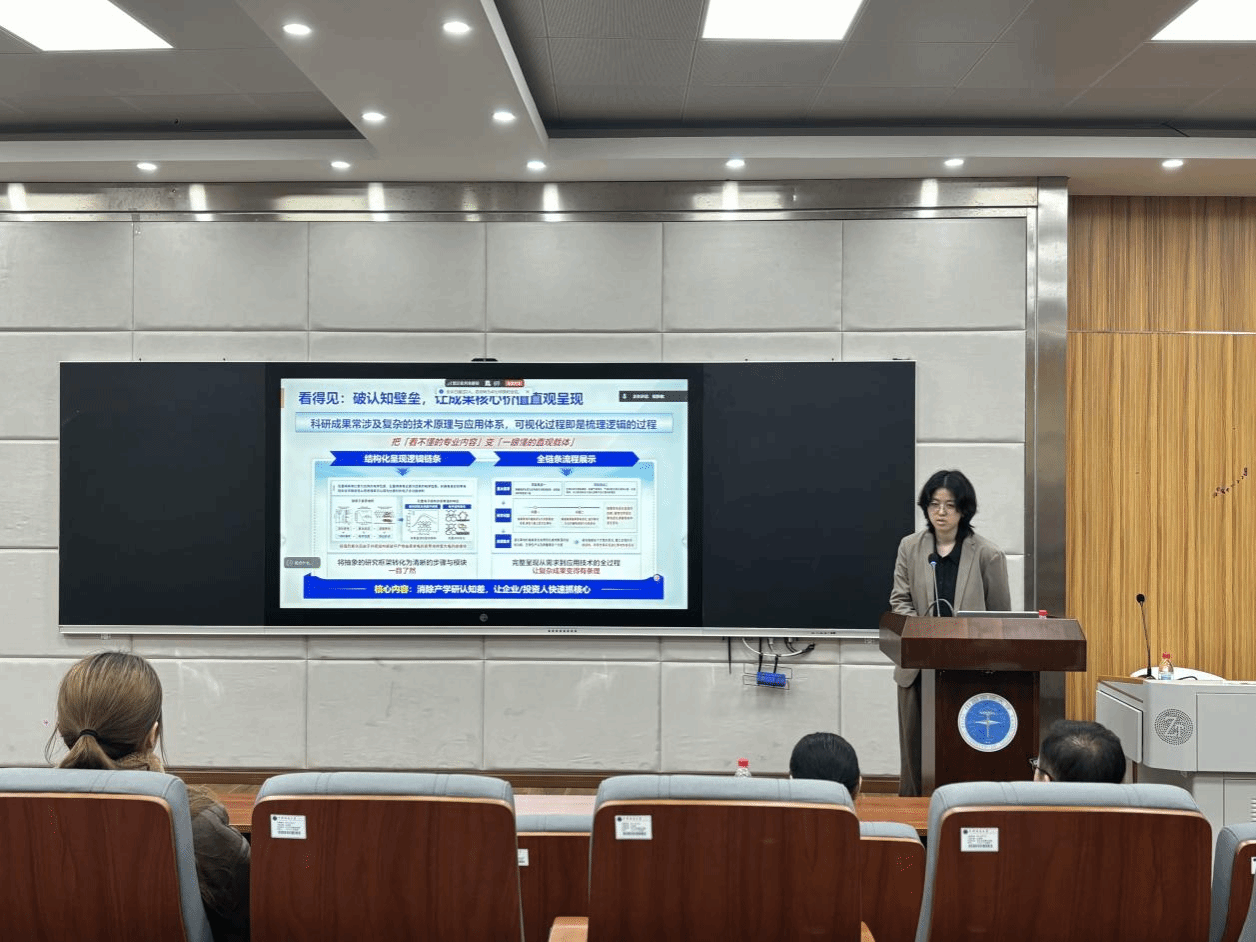 启点视界(武汉)科技创新服务有限公司程经理在本次宣讲中强调了科研可视化的核心价值——以受众为中心的逻辑梳理与数据呈现,并且跟同学们分享了当前学术成果转化中存在的信息传递壁垒。她提到团队通过视觉化语言帮助科研人员向投资人、企业及评审委员会清晰传递研究成果,暗示了当前传统学术表达方式在跨领域传播中的局限性。同时,介绍了奇点世界的跨学科团队和全链条服务体系,服务对象涵盖高校、医疗机构等多类客户,突出公司在科研可视化领域的专业性和资源整合能力。