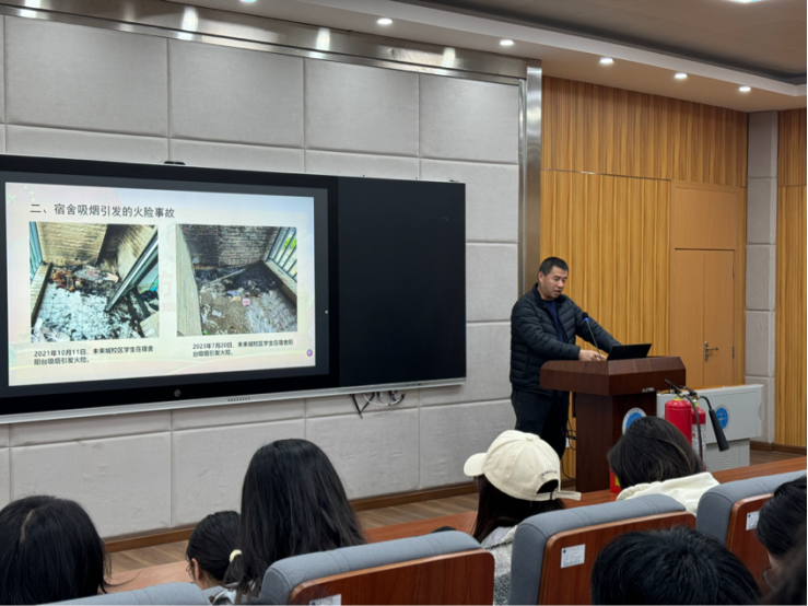 为贯彻落实学校有关新学期学生安全教育管理工作的文件要求,围绕“开学第一课”开展系列引导教育活动,3月7日下午,威廉williamhill邀请了学校安全保卫部消防科科长刘从贵老师在1104报告厅面向学院全体本研学生骨干做关于消防安全的主题讲座。学工组全体专兼职辅导员参加本次活动,讲座由学生会秘书部潘爱一主持。