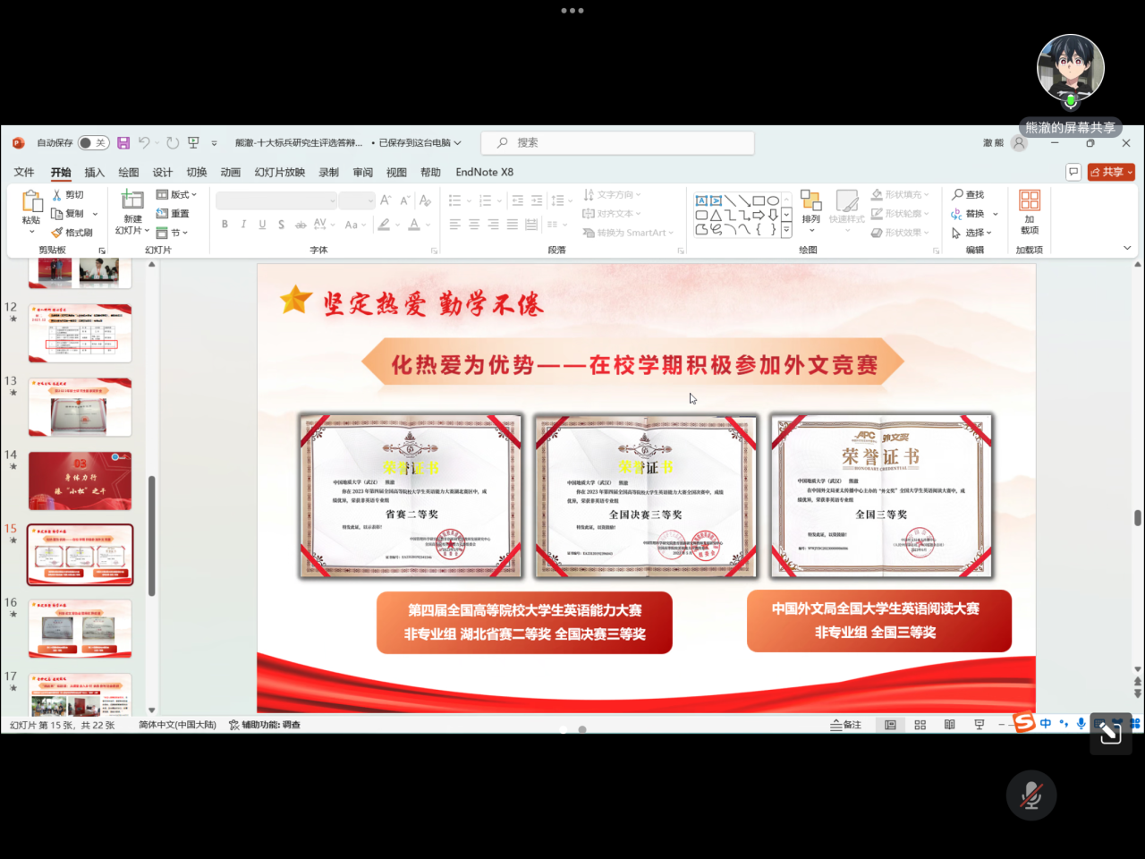 最后,2022级交互学研究生杜心宇同学分享了自己的获奖成果和学习经验。