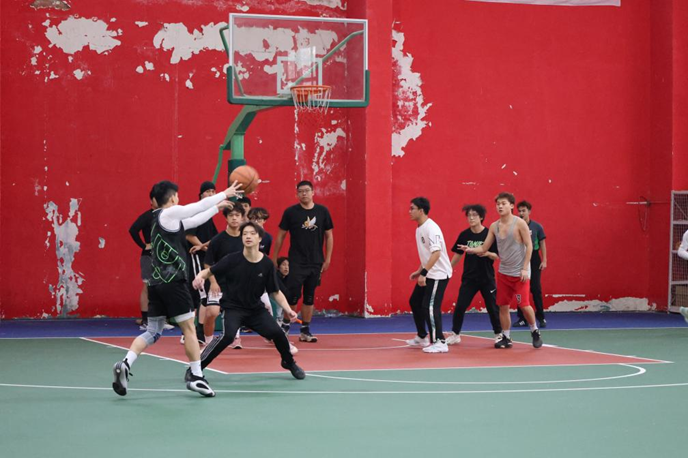 随着裁判员一声令下,比赛正式开始——裁判将篮球抛于空中,双方球员立刻进入状态。球员们在赛场上细致观察。他们进攻犀利、防守严密,球员们不经意的一个动作,就能顷刻间使得场上攻防转换。比赛局势一度焦灼,难分高下。