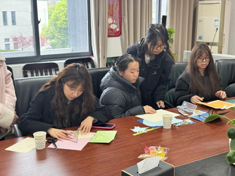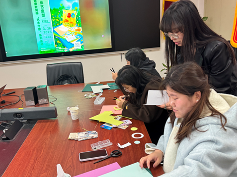 本次活动创新性地将心理育人和学科特色相结合,通过艺术疗愈过程中联动视觉、听觉、触觉等多重感官体验,帮助参与者实现更全面、更深层次的舒缓与释放。活动过程中,带领人刘燕晓、祖予希首先向大家介绍了立体贺卡制作的注意事项,随后各小组助教闫宇轮、曹慧娴、李怡雯详细讲解了制作流程,耐心解答同学们的疑问,并鼓励大家充分发挥想象力,创作独一无二的艺术作品。