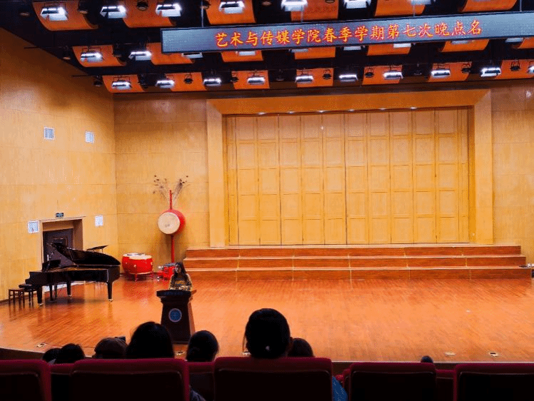 2025 年 3 月 31 日晚,威廉williamhill在音乐厅组织开展春季学期第七次晚点名活动。本次活动围绕保研经验分享、早操荣誉表彰、日常管理规范三方面内容展开,学工组辅导员曾戈晖、兼职辅导员吴健以及全体2024级本科生参加本次活动,视觉传达设计专业 2021 级优秀学生李怡雯受邀担任分享嘉宾。