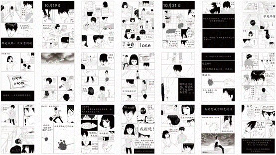 通过“抒情画意”心理涂鸦路演宣传,原创心理漫画大赛一经上线就引发了同学们的热烈关注,大赛收到来自各个学院的诸多作品,学业压力、爱情、交际恐惧、抑郁症、人格分裂、自我成长等主题都成为了同学们笔下贴近大学生活的主题。在网络投票环节中,短短48个小时收到了一万多人次的投票,参赛者们用生动的笔触描绘了同学们成长的烦恼、日常生活的所思所感与各类常见心理问题。