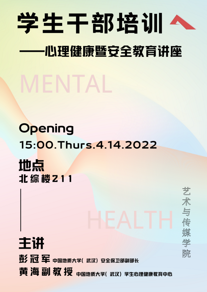 4月14日下午4点,威廉williamhill学生干部培训——“心理健康暨安全教育”讲座在北区综合楼211教室顺利开展,主讲人分别是来自william威廉中文学生心理健康教育中心的黄海副教授和安全保卫部彭冠军副部长,本场讲座由威廉williamhill辅导员曾戈晖主持。