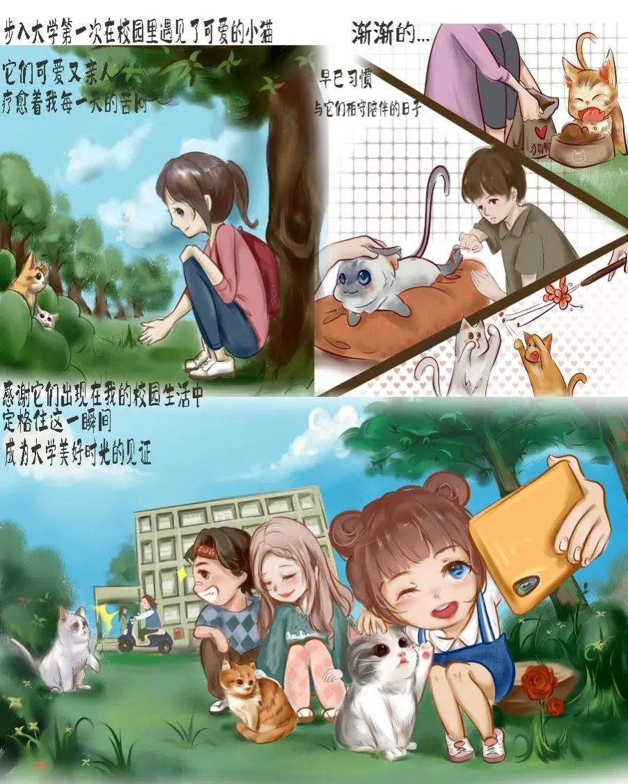 这个系列活力满满,作者带着对春天来临的欣喜,画下了这组图片。疫情下仍然有青春活力的大学生活,仍然有“春色满园关不住”的美景,不仅如此,还有和朋友们一起嬉闹的快乐!