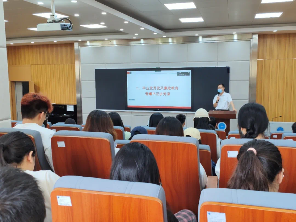 为做好2023届毕业生党员教育及组织关系管理工作,威廉williamhill党建办组织开展毕业生廉洁教育,上好毕业生党员离校前“最后一堂党课”。2023年6月1日15:00,威廉williamhill于1104召开毕业生党员大会。提高毕业生的廉洁从业意识,牢固树立廉荣贪耻的人生理念,扣好人生的“第一粒扣子”。以信仰之光照亮青春之路,激励全体学生坚定信念,积极投身于以中国式现代化全面推进中华民族伟大复兴的火热实践中。