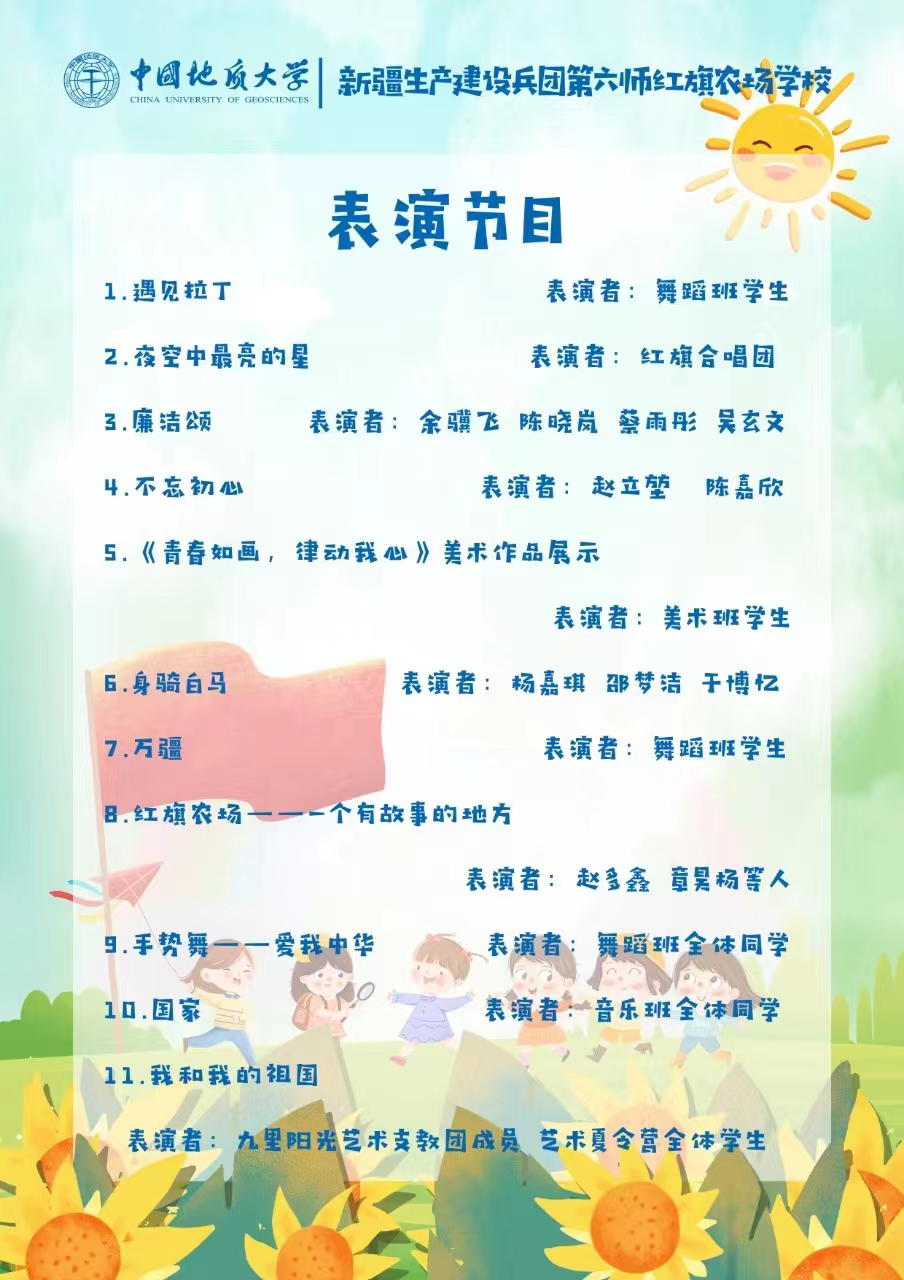 斯人若彩虹,遇上方知有。回想今日之旅,何尝不是一场值得庆幸的际遇。他们欢声笑语,他们朝气蓬勃,他们打打闹闹,这就是“小朋友们”最好的模样。在彩排的过程中,素日特别调皮的小朋友今天也表现得很棒,在边书记、单老师、曾老师以及各个节目负责人的带领下,他们不仅听从指挥而且收放自如。今天给我感触最深的是节目《国家》,表演这个节目的小朋友唱的十分响亮而且动作整齐划一。我骄傲,因为我选择了来这里支教;我骄傲,因为小朋友们从我们这里收获了成长。