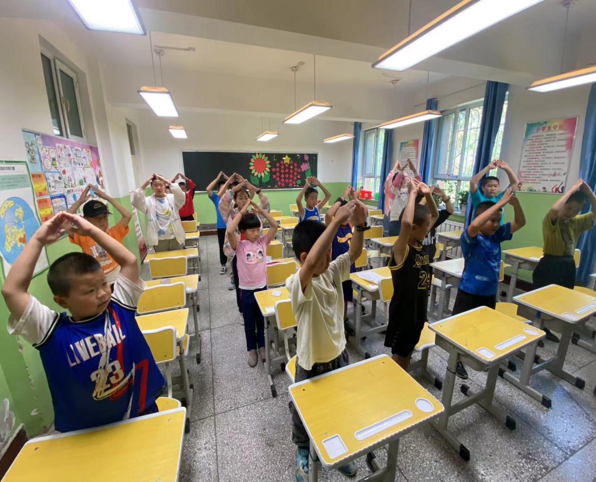 “红旗在我心,‘艺’路向前行”,7月11日,筹备已久的艺术夏令营文艺汇演已然进入了节目的最终彩排阶段。为了呈现出最好的节目效果,九里阳光艺术支教团的志愿者们在紧锣密鼓地做着最后的筹备工作,扇子舞、合唱、美术模特秀、诗歌朗诵等,支教老师们按照前期的分工安排带领着各自班级的小朋友一遍遍熟悉动作、一次次确认舞步、一句句调整台词,大家的努力付出和细心斟酌只为给观众带来最精彩的视觉感受。
