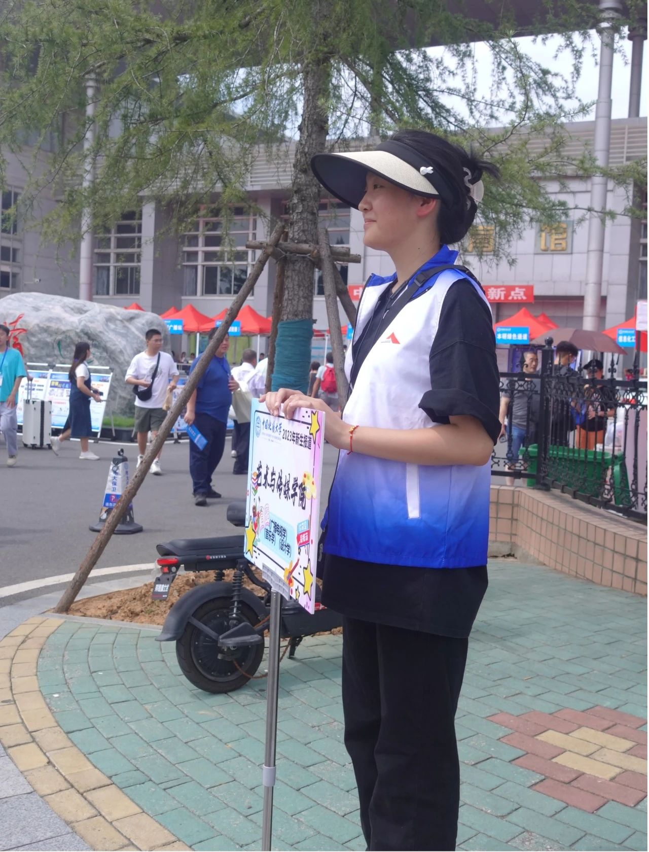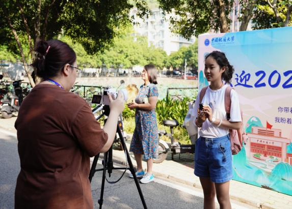 2023级新生家长们的脸上无一不洋溢着幸福的笑容,同学们清澈明亮的眼神中则充满着对未来大学生活的憧憬和希望,在西区荷花池旁的迎新报到点,微风徐徐,新生纷纷来到学院的迎新宣传板前同父母合影留念,记录下这一珍贵的时刻。