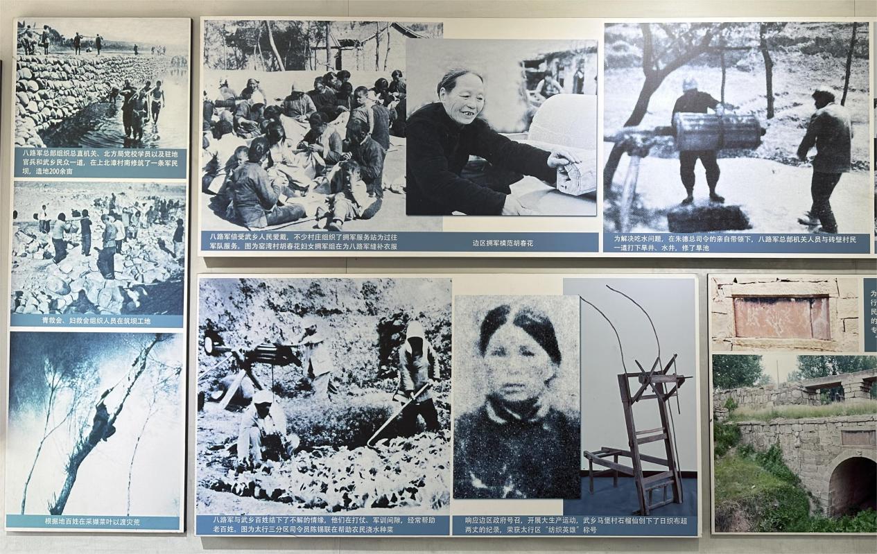 到了展览室,“军民团结筑长城”“统一战线赢人心”“无私奉献树丰碑”,多个主题展览室共同展现了抗日时期军民鱼水情和八路军的英雄事迹。环境的艰苦并不影响他们的文化繁荣,八路军总司令部旧址不仅展示了八路军的生活环境,还展示了当时八路军活跃的文化活动。