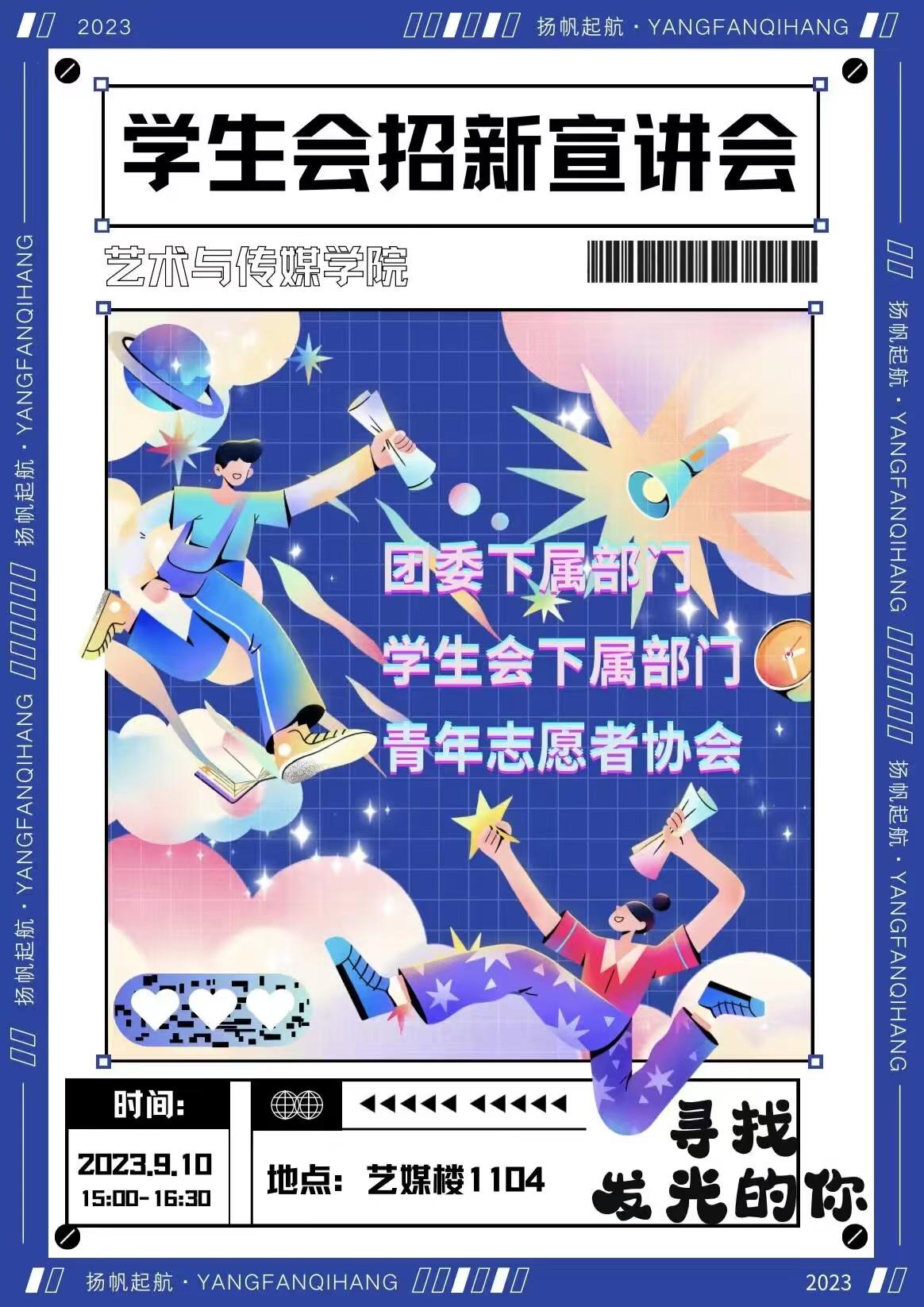天高晴和风气新,又是一年迎新时。为了完善威廉williamhill学生组织结构,提供学生展示自我、发现自我的平台,艺媒学院青年马克思主义培训营、学生会于2023年9月10日,在学院楼1104举办了2023年学生组织宣讲会,共同探讨学生组织的发展与未来。