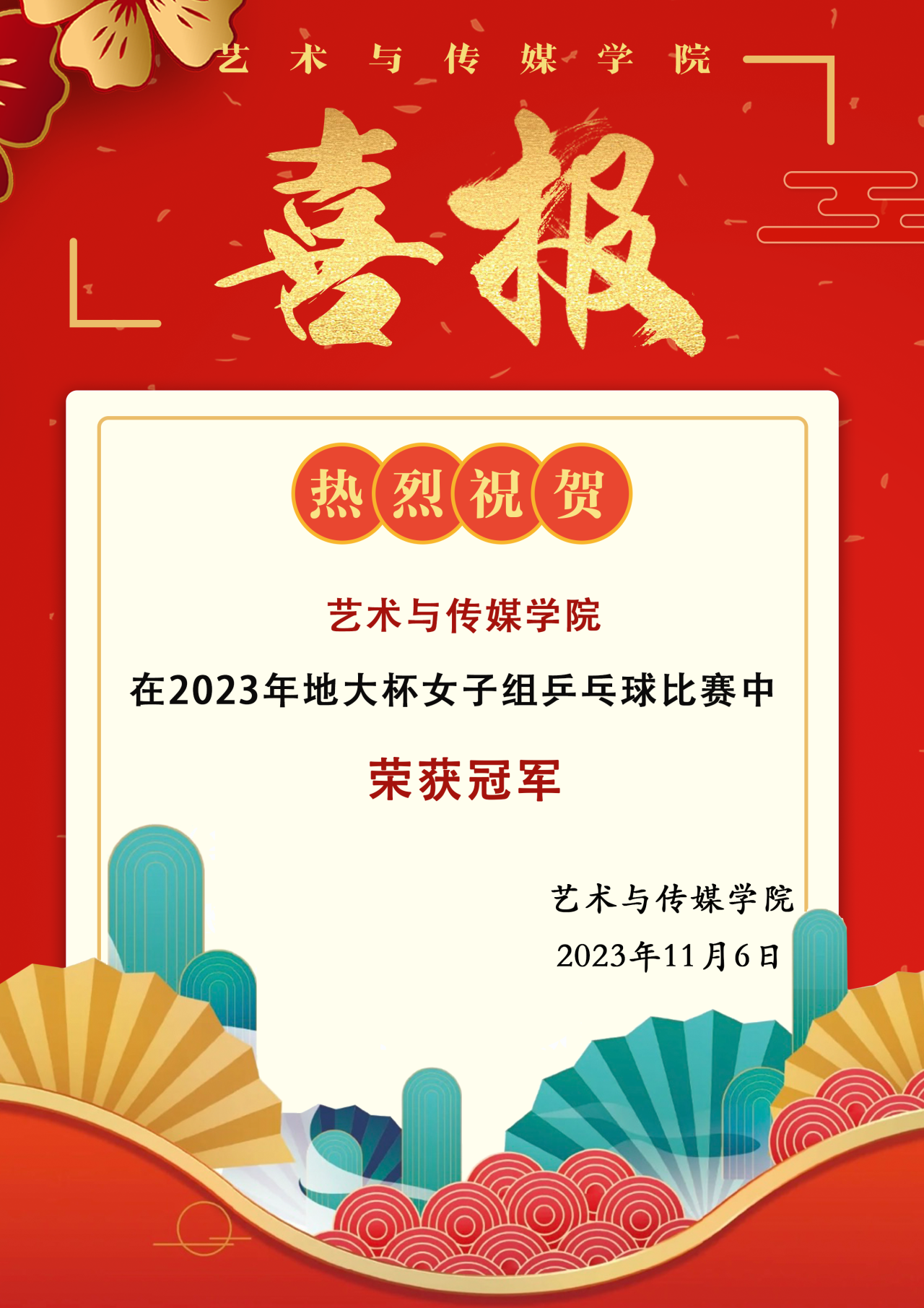 喜报!我院在2023年地大杯女子乒乓球比赛中荣获冠军
