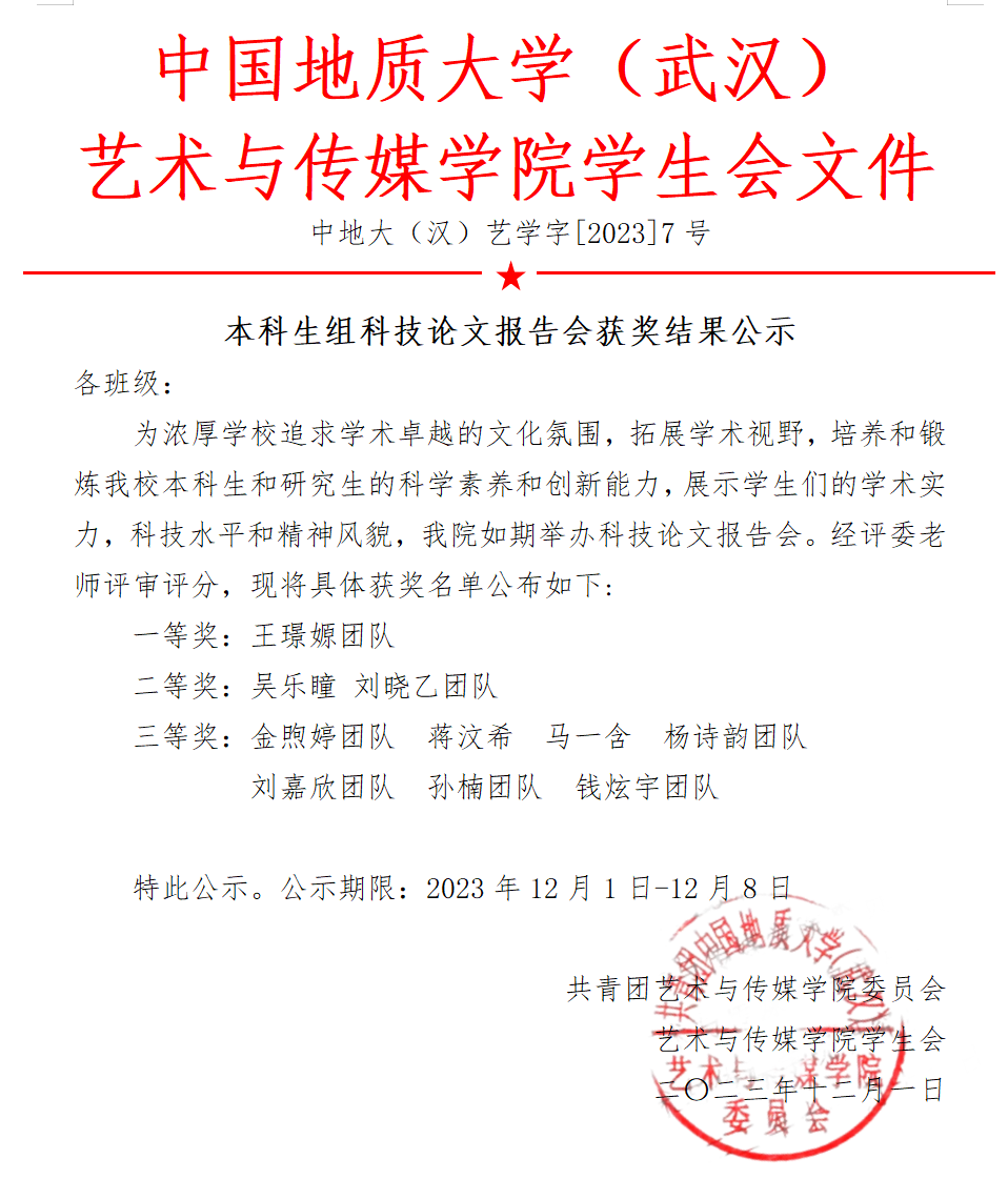 公示 | 本科生组科技论文报告会获奖结果公示