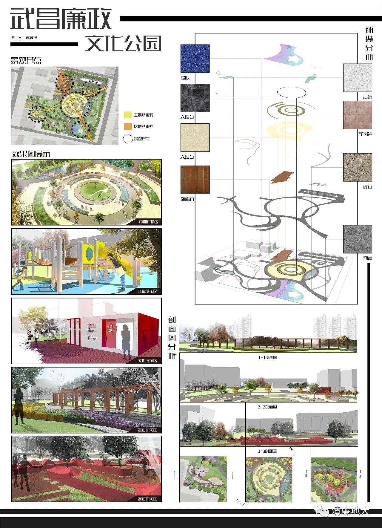 武昌廉政文化公园占地1.88公顷,基址位于解放路467号,主入口面临解放路,临街面全长150米。南连某小学,北近青石桥,西抵督府堤路并与“毛泽东同志故居”毗邻。该基址原是解放后建设的一座区级儿童公园,现状设施陈旧、综合效益低下。