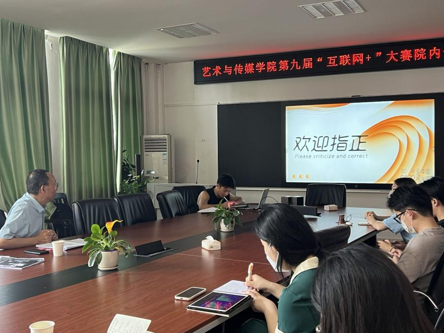会议第三项,由“文创链”项目负责人韩月进行汇报。周国华教授以“成长组”赛道的参赛要点为核心,为团队传授相关经验,并从文创产业链的关联结构及营销策略方面提出优化建议。