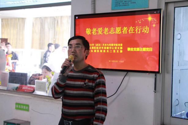 东湖医院老年保健中心党支部陈书记对我们的到来表示热烈的欢迎,并对我院党委党员师生前来慰问表示感谢。