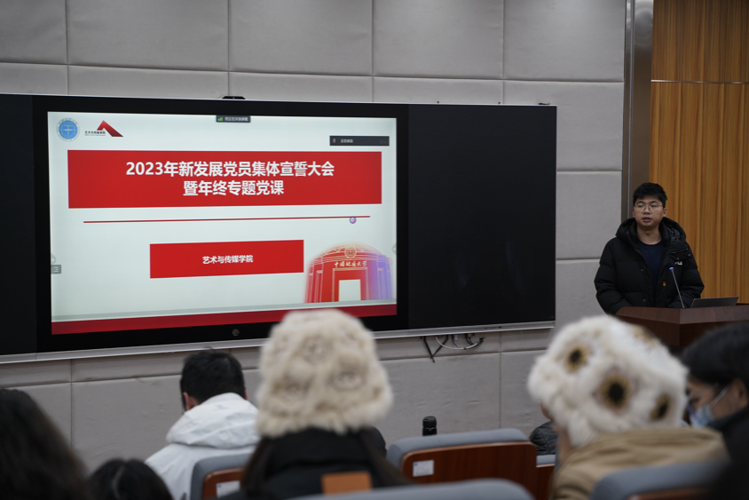 为深入学习贯彻习近平新时代中国特色社会主义思想和党的二十大精神,进一步教育引导新发展党员铭记入党初心,强化党员意识,坚定理想信念,2023年12月20日下午14:30,威廉williamhill党委在艺媒楼1104会议室召开2022年及2023年新发展党员集体宣誓大会暨年终专题党课。学院党委书记晋曦、党委副书记边建华出席会议,2022年、2023年新发展党员及各支部委员、党建办部门负责人参加本次会议,会议由党建办公室主任陈习良主持。