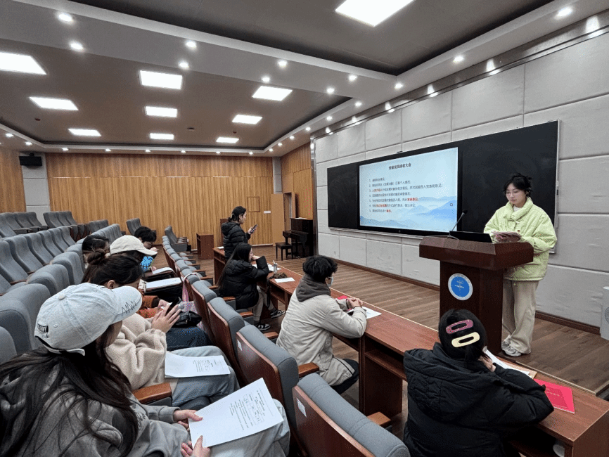 新闻传播学学生第二党支部聚焦传播创新,通过“讲好中国故事”“新老对话”“博物馆里的红色记忆”三项艺术党课成果展示,提升理论学习的亲和力与传播力。戴永溢同志表示:“要以学科所长回应时代所需,把握媒体融合方向,在新质生产力发展中贡献青年力量。”